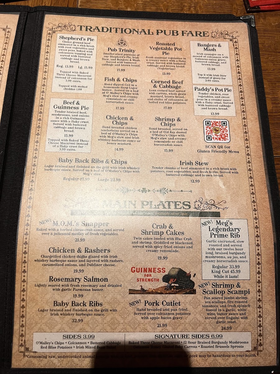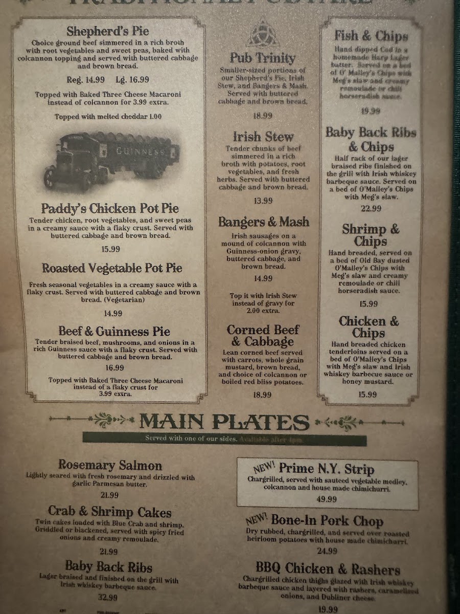 Welcome to Meg O’Malley’s Restaurant & Irish Pub, a true gem in Melbourne, FL. The menu showcases a delightful blend of traditional Irish fare and contemporary comfort food. Start your meal with the Irish Parliament Bean Soup, a homely recipe with a rich history. Craving something hearty? Dive into the Shepherd’s Pie, featuring tender beef and root vegetables under a creamy colcannon topping, perfectly paired with their homemade brown bread.